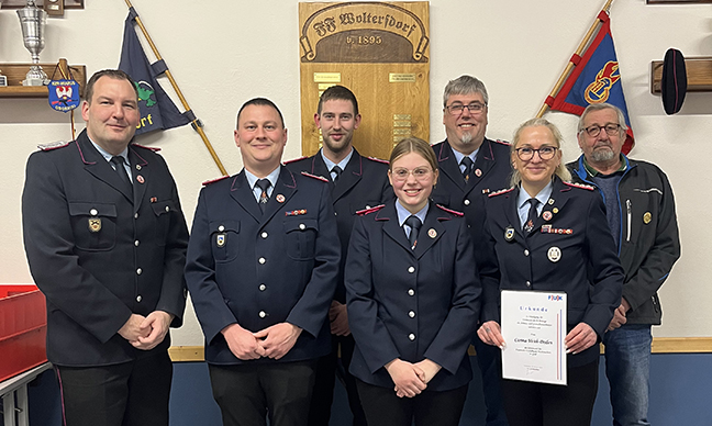 Durch den Ortsbrandmeister Jan-Martin Berg wurden im Laufe der Versammlung Jonas Kammradt und Luisa Thiele zum Feuerwehrmann beziehungsweise zur Feuerwehrfrau befördert. Von Henning Peters und Tobias Hundt wurden folgende Beförderungen ausgesprochen: Laura Främke zur Oberlöschmeisterin und Kevin König zum Oberlöschmeister. Ehrungen erhielten Frank Schult für 40-jährige Dienstzeit, Fred-Gunter Bade für 50-jährige Dienstzeit sowie Carina Veith-Doden, die mit der Ehrennadel in Gold der Feuerwehrunfallkasse (FUK) ausgezeichnet wurde.