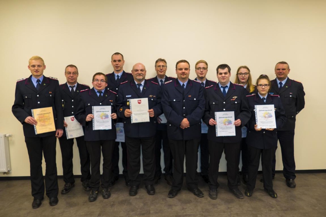 Viele Beförderungen wurden ausgesprochen. Lea Schlegel, Alina Schmidt und Markus Fürste wurden zu Feuerwehrfrauen bzw. zum Feuerwehrmann befördert. Janko Nieber, Rene Schmidt und Arne Anton wurden zum Oberfeuerwehrmann, sowie Niko Pengel und Domenik Schulz zum Hauptfeuerwehrmann ernannt. Besonders freuen durfte sich der stellvertretende Ortsbrandmeister Martin Projahn. Er wurde zum Hauptlöschmeister befördert. Da er auch Mitglied der SKF-Werkfeuerwehr ist, darf er auch den Dienstgrad Werk-Hauptlöschmeister tragen.