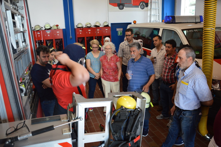 Die Teilnehmer sollen wissen, wie Brandschutz und Rettungswesen in Deutschland funktioniert – es muss verstanden werden, dass die Feuerwehren in unserem Landkreis nur ehrenamtlich arbeiten, nur dann kann auch Verständnis und womöglich Interesse entstehen. Um ihnen dieses Wissen zu vermitteln, wurde das Thema im Unterricht erörtert – wann rufe ich den Notruf, wie funktioniert das alles und was macht die Feuerwehr, wenn sie kommt? – diese Fragen wurden beantwortet und zum Abschluss des Projektes die Feuerwehr in Dannenberg besucht. Dort wurde den interessierten Männern und Frauen alles gezeigt und erklärt, was sie wissen wollten – und das war eine ganze Menge. Auch ein Rettungswagen des DRK stand zur Besichtigung zur Verfügung.