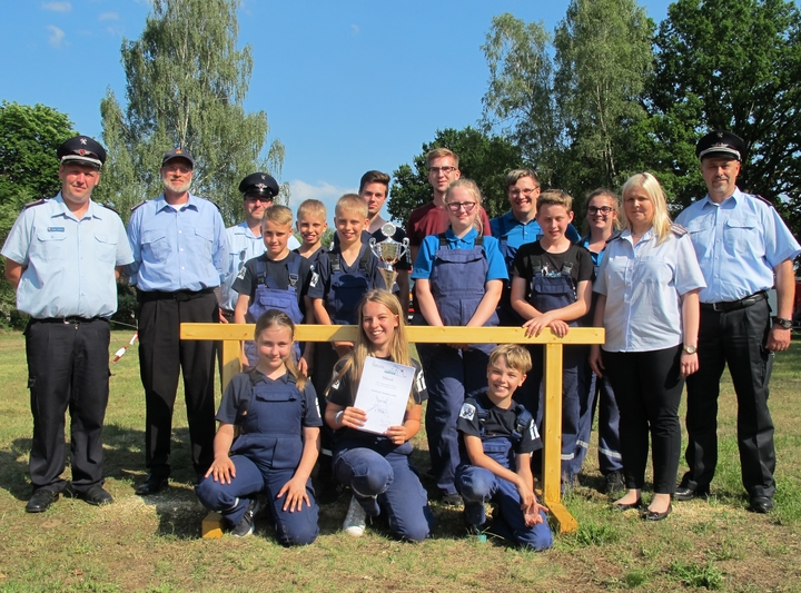 Von den insgesamt zehn in Nienwalde angetreten Gruppen gelang das acht Teams! Dass selbst das Erreichen von 99,5 Prozent nicht mehr ausreicht, sondern inzwischen „nur noch gezählt wird, wie weit die jeweilige Gruppe von den 100 Prozent entfernt ist“, wie es der Nienwalder Ortsbrandmeister Hans Luginbühl vor der Siegerehrung anmerkte, verdeutlichen die ersten drei Platzierten: Prezelle erreichte mit 99,64 Prozent den 3. Platz, davor errang die Holtorfer Wehr (99,67 Prozent) Platz 2. Siegreich war in diesem Jahre Meetschow II mit 99,80 Prozent – dementsprechend groß war der Jubel, als Samtgemeinde-Bürgermeister Christian Järnecke den Pokal übergab.