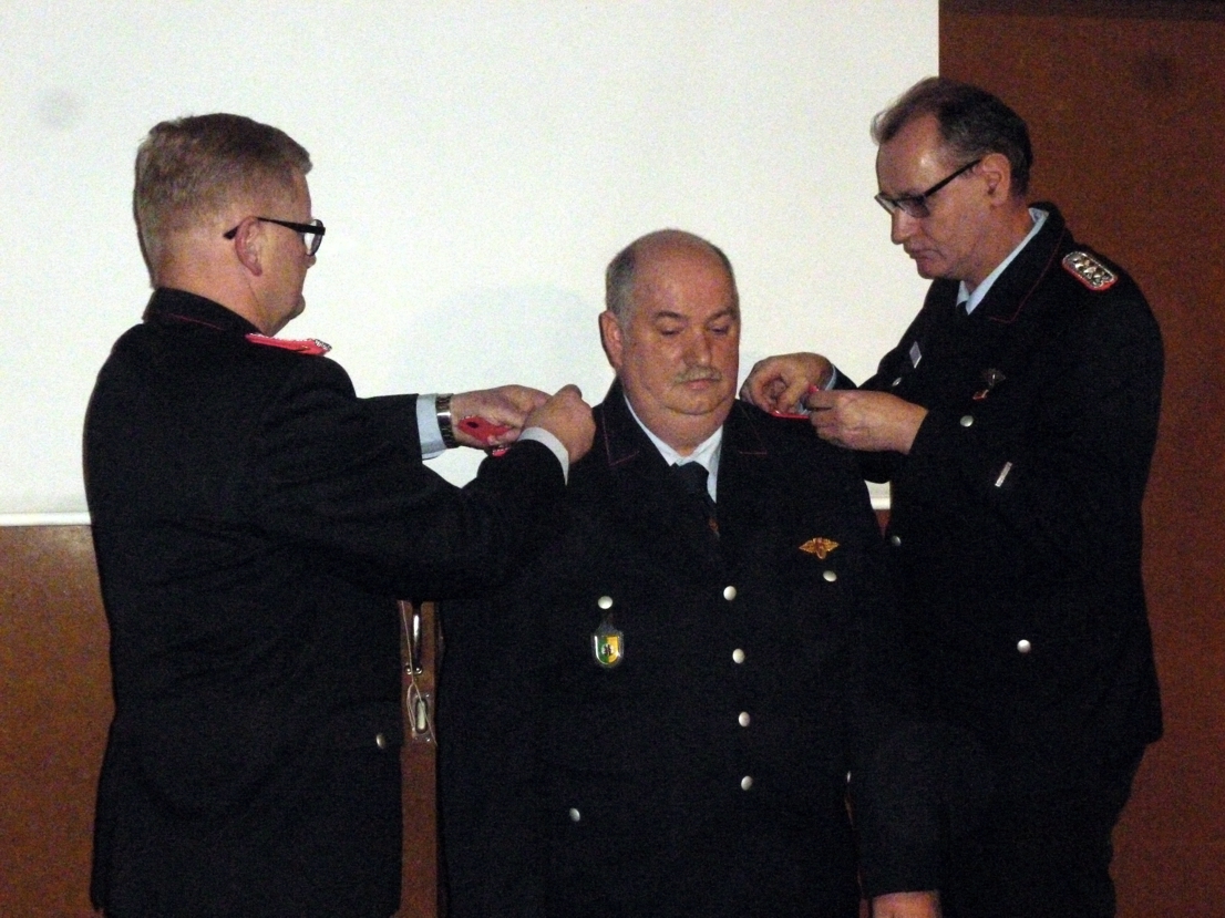Zum Oberfeuerwehrmann beförderte Ortsbandmeister Peters Uwe Schweitzer, der nach mehr als zwanzigjähriger Abstinenz wieder den Weg in den aktiven Feuerwehrdienst gesucht hatte.