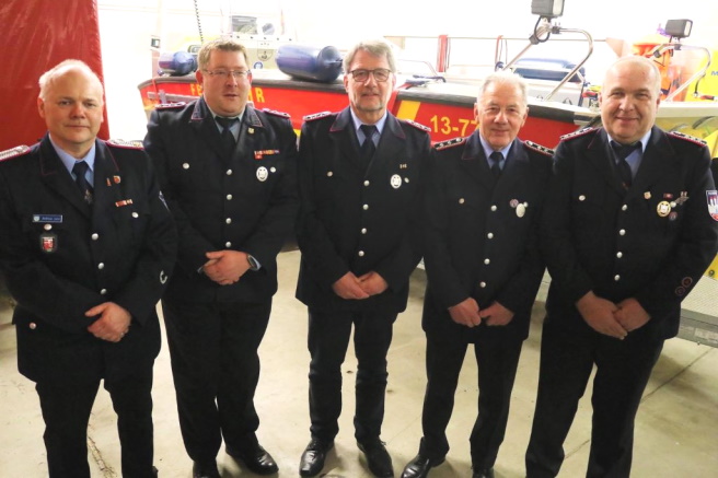 Im Anschluss wurde eine Vielzahl von Beförderungen und Ehrungen ausgesprochen. So wurden Alexander Welke, Nikolai Kröger und Vincent Böhnert zu Oberfeuerwehmännern, Natalia Stübbecke zur Oberfeuerwehfrau, Laura Loelf und Cordula Meyer (letztere in Abwesenheit) zu Hauptfeuerwehrfrauen und Lars Wohlgemuth zum 1. Hauptfeuerwehrmann befördert.