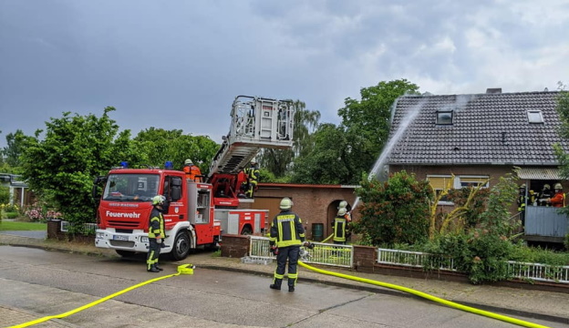 Vermutlich durch Blitzschlag wurde am Dannenberger Stadtrand der Dachstuhl eines Einfamilienhauses entzündet. Anwohner berichteten von einem Blitz, gefolgt von einem lauten Knall – unmittelbar danach habe man die ersten Flammen aus dem Dach schlagen sehen. Dem schnellen Handeln der ehrenamtlichen Brandschützer mit einem zügigen Innenangriff war es zu verdanken, dass der Schaden begrenzt werden konnte.