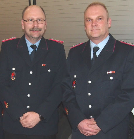 Gorden Groth (li.) wurde zum 1.Hauptfeuerwehrmann, Dirk zu Dreele zum Oberlöschmeister befördert.