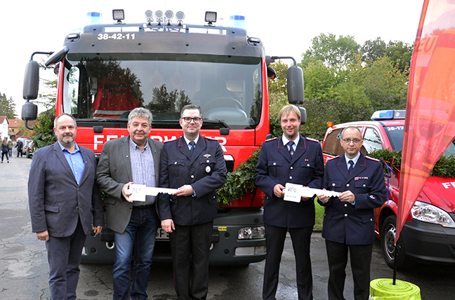 Gemeindebrandmeister Michael Schalon konnte sich eine gewisse Ironie nicht verkneifen: für die Beschaffung des MLF wurde die Ersatzbeschaffung von zwei Einsatzleitwagen nach hinten geschoben, diese sind aber mittlerweile ebenfalls in der Samtgemeinde angekommen und wurden vor drei Wochen an die Wehren übergeben.