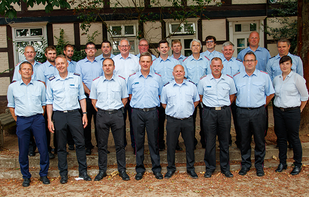 Anschließend erfolgten mit einer Vereidigung Ernennungen, bei der die Anwesenden den Diensteid unter Erheben der Hand und Nachsprechen der Eidesformel geleistet haben. Durch das Ablegen des Eids werden die Ortsbrandmeister und Bereichsbrandmeister sowie Stellvertreter in das Ehrenbeamtenverhältnis aufgenommen. Dieses ermächtigt den Inhaber besondere Weisungsrechte, wie zum Beispiel das Erteilen von Platzverweise im Einsatzfalle auszusprechen. Als neue Ortsbrandmeister wurden mit Wirkung zum 01. Juli Marko Köster aus Breese/Marsch, Joachim Klatt aus Jameln, Keit Chocholowicz aus Quickborn und Matthias Hewicker aus Streetz sowie die stellvertretenden Ortsbrandmeister Matthias Linde aus Jameln, Michael Nieschulze aus Volkfien und Christian Fuhrhop aus Wietzetze ernannt. Kommissarisch ernannte Meyer Sahra Frahm aus Breese/ Marsch zur stellv. Ortsbrandmeisterin, Dirk Schlüter aus Karwitz, Andreas Potratz aus Schaafhausen, Moritz Richter aus Splietau und Hannes Schild aus Streetz als stellv. Ortsbrandmeister sowie Dirk Steding aus Wietzetze als Ortsbrandmeister, da noch nicht alle erforderlichen Lehrgänge absolviert sind. Neuer Bereichsbrandmeister im Bereich Ost ist Holger Bannöhr, das Amt des stellvertretenden Bereichsbrandmeister West hat nun Andreas Lenz inne.