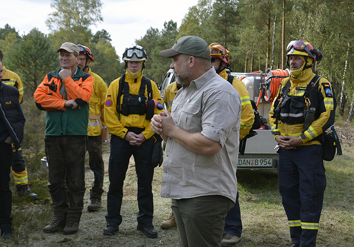 Das European Forest Institute (EFI) nutzte diese Möglichkeit zu Forschungs- und Trainingszwecken. Der Feuerökonom Alexander Held leitet das EU-weite Forschungsprojekt „Waldbrand-Klima-Resilienz“ (WKR) und arbeitet bereits seit einiger Zeit mit den Gräfl. Bernstorffschen Betrieben zusammen. Wesentlicher Bestandteil des WKR-Projektes ist es, international vergleichbare Ausbildungsstandards in der Vegetationsbrandbekämpfung für deutsche Feuerwehren zu definieren.