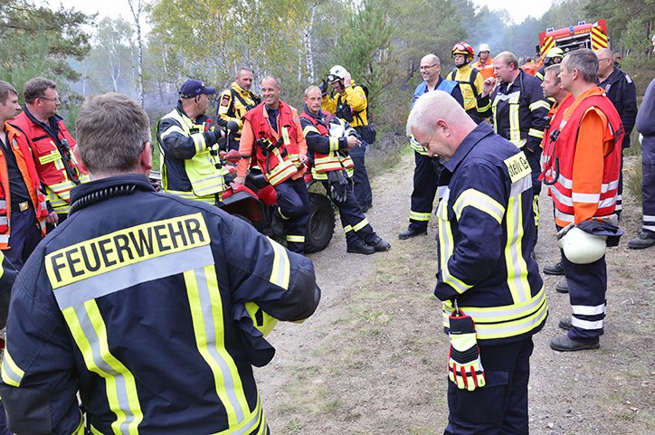 Große Diskussionen gibt es immer wieder bei Begriffen wie „Gegenfeuer“ oder „Vorfeuer“, dass man Feuer mit Feuer bekämpfen kann und auch sollte, will sich einigen Feuerwehrleuten nicht erschließen. Doch sie wurden in der Nemitzer Heide eines besseren belehrt: denn neben Bodengeräten zur Brandbekämpfung wurden auch Gegenfeuer gelegt und der Erfolg war beachtlich: gerade aus der Luft ließ sich gut erkennen, wie beide Feuer aufeinander zuliefen und sich am gegenseitig die Nahrung nahmen. Das Feuer erlöschte innerhalb kürzester Zeit und die Feuerwehrleute aus der Samtgemeinde Gartow konnten mit Feuerpatschen, Hacken und Löschrucksäcken die Glutnester löschen.