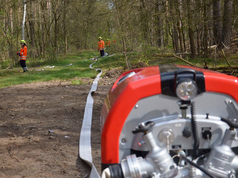 Die Züge 1 und 2 bauen jeweils eine Wasserentnahmestelle aus Unterflurhydranten in der Ortschaft Teplingen auf und fördern das Wasser über lange Wegstrecken in den Wald nördlich von Teplingen. Hier entfalten die Schlauchwagen ihre volle Leistungsfähigkeit – innerhalb kürzester Zeit sind Schlauchstrecken mit einer Gesamtlänge von ca. 1,5 km verlegt, mehrere Verstärkerpumpen werden in die Wasserförderstrecken eingebaut, um Druckverluste auszugleichen. An der Spitze der Förderstrecke werden sog. Riegelstellungen mit mehreren Strahlrohren aufgebaut, um das Feuer an dieser Stelle aufzuhalten.