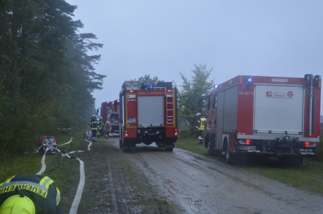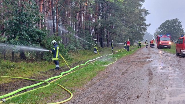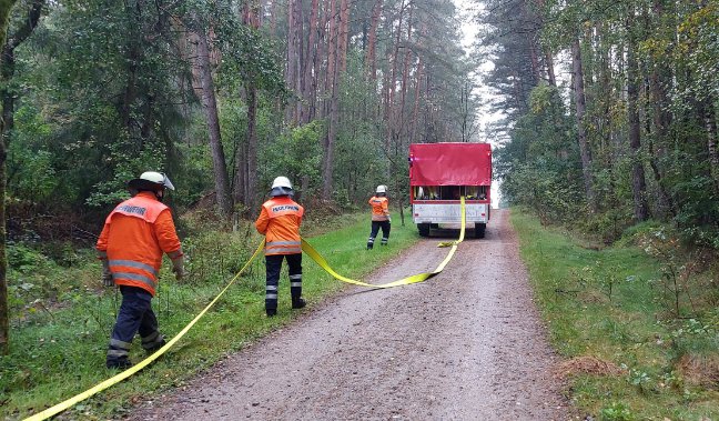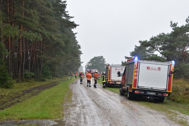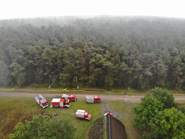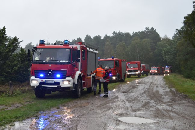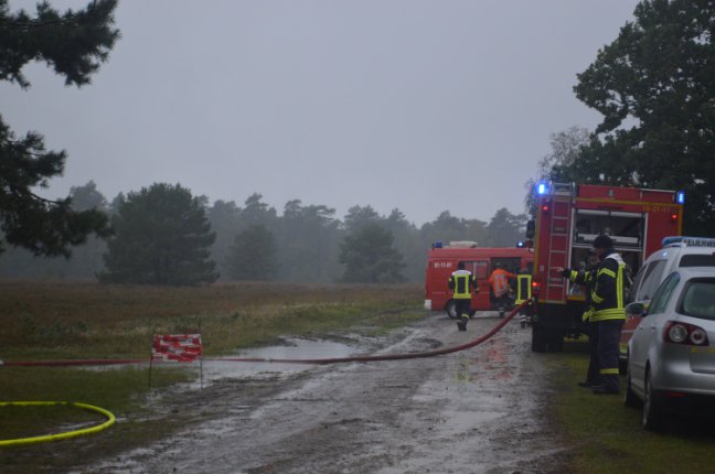 Bei hochsommerlichen Temperaturen und frischem Wind war im Waldgebiet südlich der Heidefläche „Töps“ ein Waldbrand ausgebrochen. Die Feuerwehren der Samtgemeinde Hanstedt und Fachzüge der Harburger Kreisbereitschaft waren bereits seit längerem im Einsatz. Um eine Ausbreitung des Feuers auf die Heidefläche zu verhindern, sollten die nachgeforderten Kräfte aus Lüchow-Dannenberg eine 500 Meter lange Riegelstellung am nördlichen Waldrand errichten.