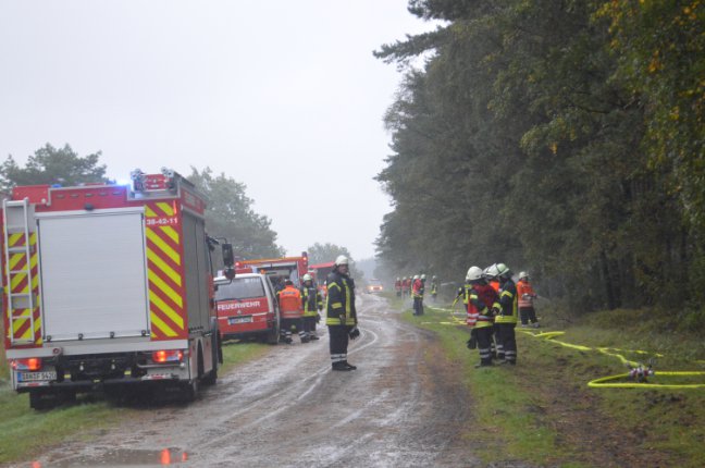 Hanstedt/Lk. Harburg (hbi) Am vergangenen Samstag (07.10.2023) machte sich die Kreisfeuerwehrbereitschaft 1 des Landkreises Lüchow-Dannenberg auf den Weg zur Großübung nach Hanstedt in den Landkreis Harburg - über 120 Feuerwehrleute waren mit mehr als 20 Fahrzeugen unterwegs.