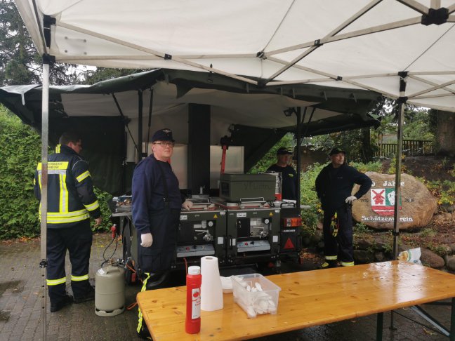 Nach fast zwei Stunden hieß es dann zum zweiten Mal an diesem Samstag „Übungsende – Rückbau“. Bei der anschließenden Abschlussbesprechung zog Bereitschaftsführer Michael Schulze ein positives Fazit der Übung. „Die Abläufe haben funktioniert, die Mannschaft hat trotz der widrigen Wetterbedingungen eine tolle Moral und eine sehr gute Zusammenarbeit bewiesen. – Danke für Eure durchweg gute Laune heute“.