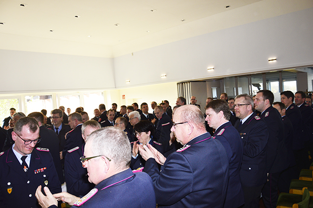 Dem Anlass entsprechend folgten zahlreiche Gäste Baucks Einladung. Neben zahlreichen Kreisbrandmeistern aus befreundeten Landkreisen, wohnten auch der Regierungsbrandmeister Dieter Ruschenbusch der Versammlung bei. Nach langer Zeit war mit Olaf Kapke auch der Präsident des Landesfeuerwehrverbandes Niedersachsen dabei. Landrätin Dagmar Schulz betonte in ihrem Grußwort die enorme Bedeutung des Ehrenamtes Feuerwehr für den Landkreis. Die Feuerwehr sei Teil des täglichen Lebens, die freiwilligen Einsatzkräfte leisten einen wichtigen Beitrag zur Gesellschaft, weshalb es -berechtigterweise- eine hohe Wertschätzung für die Blauröcke gibt. Auch Gartows Samtgemeinde-Bürgermeister lobte die tolle Arbeit, er werde nicht müden, zu betonen, dass das Engagement der 3.000 Feuerwehrleute nicht selbstverständlich ist. Und damit diese Einsatzkräfte auch vernünftig ausgerüstet sind, investieren die Samtgemeinden Jahr für Jahr hohe Summen. Regierungsbrandmeister Ruschenbusch erinnerte in diesem Zusammenhang daran, dass in den letzten Jahren ca. 4 Mio. Euro Landesförderung in den Lüchow-Dannenberger Brandschutz geflossen sind. „Das Land weiß, dass es im Wendland gute Feuerwehren gibt“. LFV-Präsident Kapke berichtete aus der Verbandsarbeit auf Landesebene und kündigte u.a. neue Uniformen an.