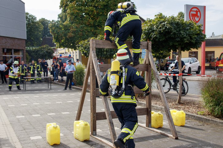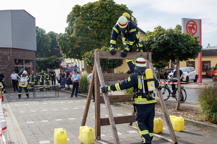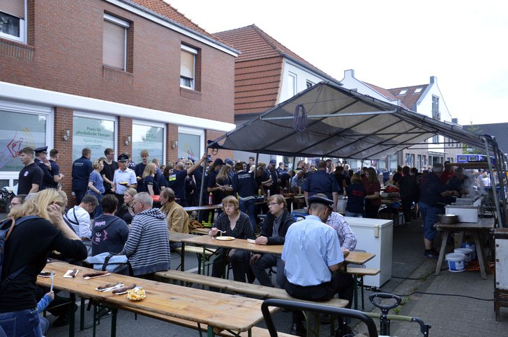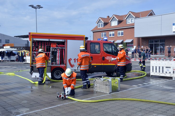 Die Feuerwehren der Gemeinde Beverstedt hatten den gesamten Ortskern innerhalb von zwei Tagen „auf links gedreht“, wie der Gemeindebrandmeister Ralf Meyer es formulierte. Der Busbahnhof und die Parkplätze am Schulzentrum boten ausreichend Platz für die Feuerwehrfahrzeuge der teilnehmenden Ortsfeuerwehren. Für die Auswertung hatte die Gemeinde Beverstedt ihr Rathaus zur Verfügung gestellt. Fest zugewiesene Guides brachten die Gruppen zu den einzelnen Wettbewerbsstationen: für die Löschübung und den Atemschutz-Parcours wurden die Parkplätze rund um den Feldhofplatz genutzt, Fahrübung und Kuppeln fand auf dem Markplatz statt. Die Attraktivität wurde nochmal deutlich erhöht, denn: auf der Logestraße, die die Zuschauer beim Pendeln zwischen den Stationen passierten, war eine Feuerwehrmeile mit Vorführungen, Ausstellungen und nicht zuletzt einem vielfältigen kulinarischen Angebot aufgebaut.