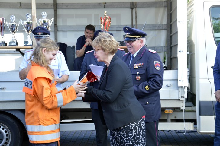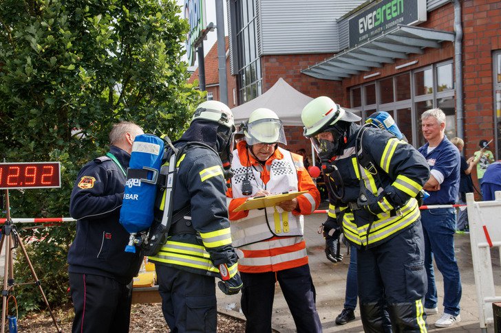 Das schöne Wetter lockte viele Besucher in den Ortskern Beverstedts. Dies blieb auch der Niedersächsischen Innenministerin Daniela Behrens bei Ihrem Besuch in ihrer Heimatgemeinde nicht verborgen. Sie würdigte in ihrem Grußwort die Veranstaltung als „großen Werbetag für die Niedersächsischen Feuerwehren“. Zudem zeigte sie sich froh und dankbar über den Einsatz der rund 130.000 Einsatzkräfte in den Niedersächsischen Feuerwehren, „sie sind da, wenn es kritisch wird und Menschen Hilfe brauchen.“ Behrens schaute sich die Wettbewerbe an und zollte besonders dem Modul „Atemschutz“ ihren größten Respekt.