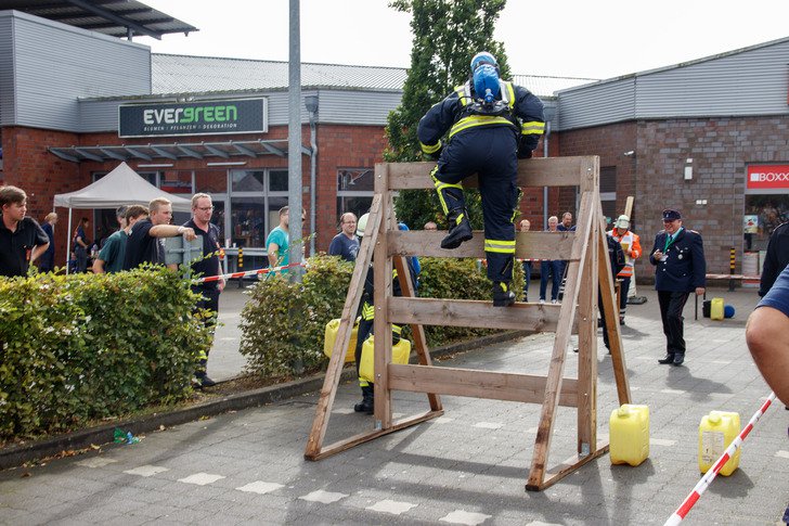 Auch Guido Dieckmann, Bürgermeister der Gemeinde Beverstedt, verfolgte die Wettbewerbe mit hohem Interesse und auch er kam -nur vom zuschauen- bei dem Atemschutzparcours förmlich ins Schwitzen. Er sprach in seinem Grußwort seinen besonderen Dank dem Orga-Team aus. Etwa 150 Feuerwehrleute aus 15 Ortsfeuerwehren unter der Leitung von Gemeindebrandmeister Ralf Meyer haben für einen reibungslosen Ablauf und eine perfekte Umsetzung gesorgt.