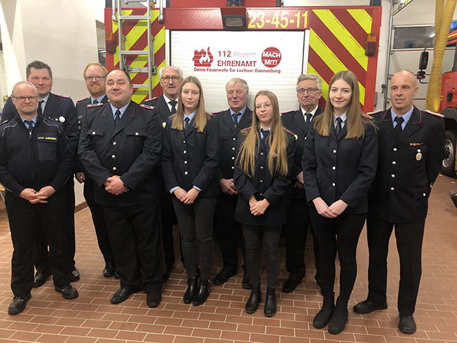 Für 25jährige Mitgliedschaft wurden Thomas Tiedemann und Henry Russow ausgezeichnet. Für 50jährige Mitgliedschaft wurden Hans-Georg Predöhl, Norbert Schmidt und Heinz-Herbert Tiedemann geehrt. Zu Feuerwehrfrauen wurden Hannah Becker, Joanna Krüger und Lea Kühne befördert. Den Dienstgrad Oberfeuerwehrmann hat nun Peter Kulas inne.