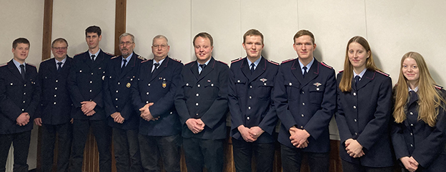 Zum Feuerwehrmann wurden Oliver Hahlbohm, Christoph Hahlbohm und Julian Namysl befördert. Ebenso Pauline Gäde und Miriam Pevestorf zur Feuerwehrfrau. Silvio Schley wurde zum Hauptfeuerwehrmann befördert. Für zwei Kameraden hatte der stellvertretende Gemeindebrandmeister Peter Burkhardt eine Beförderung im Gepäck: Kevin Schulz wurde zum Löschmeister befördert und Johannes Gäde zum Brandmeister. Ebenso verlieh er Andreas Gaarzmann die Ehrennadel für 25 jährige Mitgliedschaft, sowie Holger Schulz und Ulrich Wiese die Ehrennadel für 40 jährige Mitgliedschaft in der Feuerwehr.