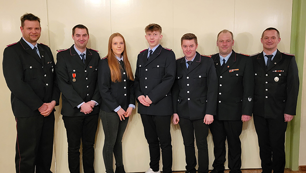 Gorlebens Bürgermeister Klaus Hofstetter bedankte sich bei den Mitgliedern für ihren ehrenamtlichen Einsatz, der das Gemeindeleben unterstützt und verbessert. Gemeindebrandmeister Holger Friedrichs stellte kurz die Arbeit in der Samtgemeindefeuerwehr und die bevorstehende Umstellung der Atemschutzausrüstung vor. Er beförderte Meetschows stellvertretenden Ortsbrandmeister Marco Lohse zum Oberlöschmeister. Neben Lohse wurden Finn und Niclas Erlebach zu Oberfeuerwehrmännern befördert. Anna Ellerhausen, Sara Ellerhausen und Paula Hennings wurden zu Feuewehrfrauen, Benedikt Steiling, Leon-Alexander Steiling und Conrad Wohler zu Feuerwehrmännern befördert.