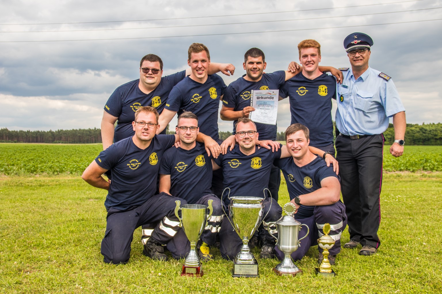 Den Wanderpokal der Samtgemeinde Elbtalaue überreichte der Samtgemeindebürgermeister Jürgen Meyer an die Erstplatzierte Feuerwehr aus Dannenberg 2. Diese absolvierte die drei Module mit einem Zielerreichungsgrad von 100 %, genau wie die zweitplatzierte Wehr aus Gülden. Dannenberg hatte allerdings mit 33,96 Sekunden gegenüber Gülden mit 39,67 Sekunden die besseren Zeittakte. Der dritte Platz geht mit 100 % und Zeittakten von 42,46 Sekunden an die Feuerwehr aus Karwitz.