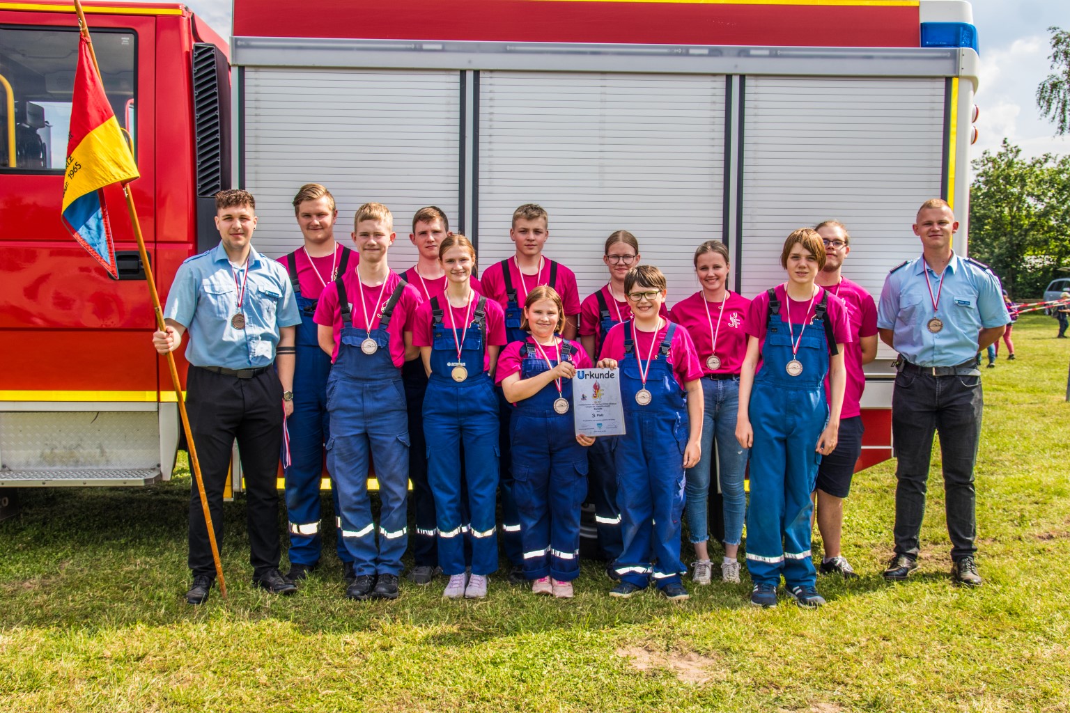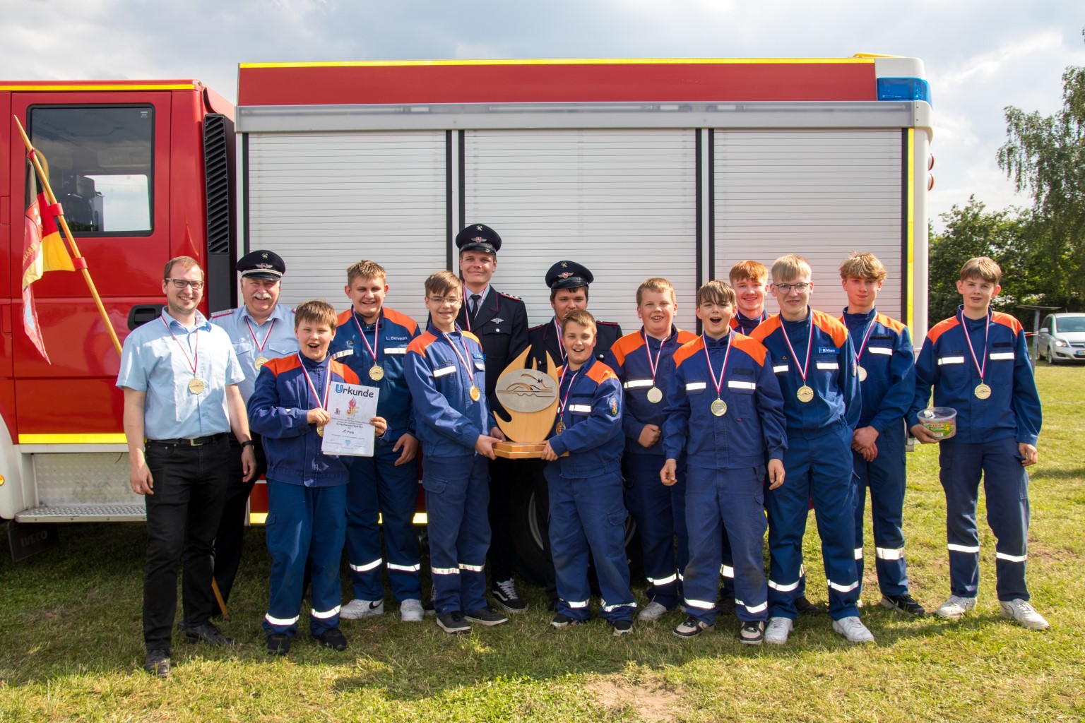 Die Jugendfeuerwehr aus Schaafhausen-Volkfien sicherte sich mit 1389,86 Punkten den ersten Platz. Den zweiten Platz mit 1389,50 Punkten erreichte die Jugendfeuerwehr aus Gülden-Mützingen gefolgt von der drittplatzierten Jugendfeuerwehr aus Karwitz mit 1384,40 Punkten. Bei den parallel laufenden Spiele ohne Grenzen der Jugendfeuerwehren siegte die Jugendfeuerwehr Karwitz, gefolgt von der zweitplatzierten Gruppe aus Gülden-Mützingen und der drittplatzierten Gruppe Gusborn rot. (weitere Platzierungen unten)