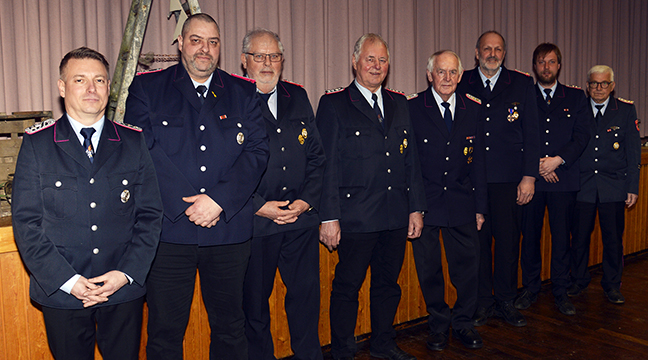 Zudem wurden Björn Schindler und Mirko Napieralla für 25, Werner Gröger und Wolfang Struck für 50 Jahre Mitgliedschaft in der Freiwilligen Feuerwehr ausgezeichnet. Ulrich Schmidt wurde für bemerkenswerte 70 Jahre in der Feuerwehr geehrt. Der scheidende Bereichsbrandmeister Otmar Kandora konnte zudem den Ortsbrandmeister Björn Schindler zum Hauptlöschmeister befördern.