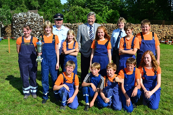 Die Jugendfeuerwehr aus Kapern freute sich mit ihrer Jugendfeuerwehrwartin Kristina Bohlmann-Mieth,