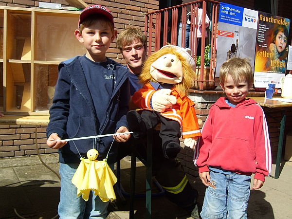 Mit beim Schulfest dabei war auch Ricki, ein Plüschfeuerwehrmann, der gemeinsam mit Brandschutzerzieher Maik Schulz den Kindern einiges wissenswertes über Brandschutz und Feuerbekämpfung beibrachte. Ricki wurde vom VGH-Büro Olaf Busse aus Dannenberg gespendet, um die Brandschutzerziehung in der Grundschule Gusborn, im Spielkreis Siemen, sowie in der Floriangruppe der Ortsfeuerwehr Gusborn zu erleichtern.
