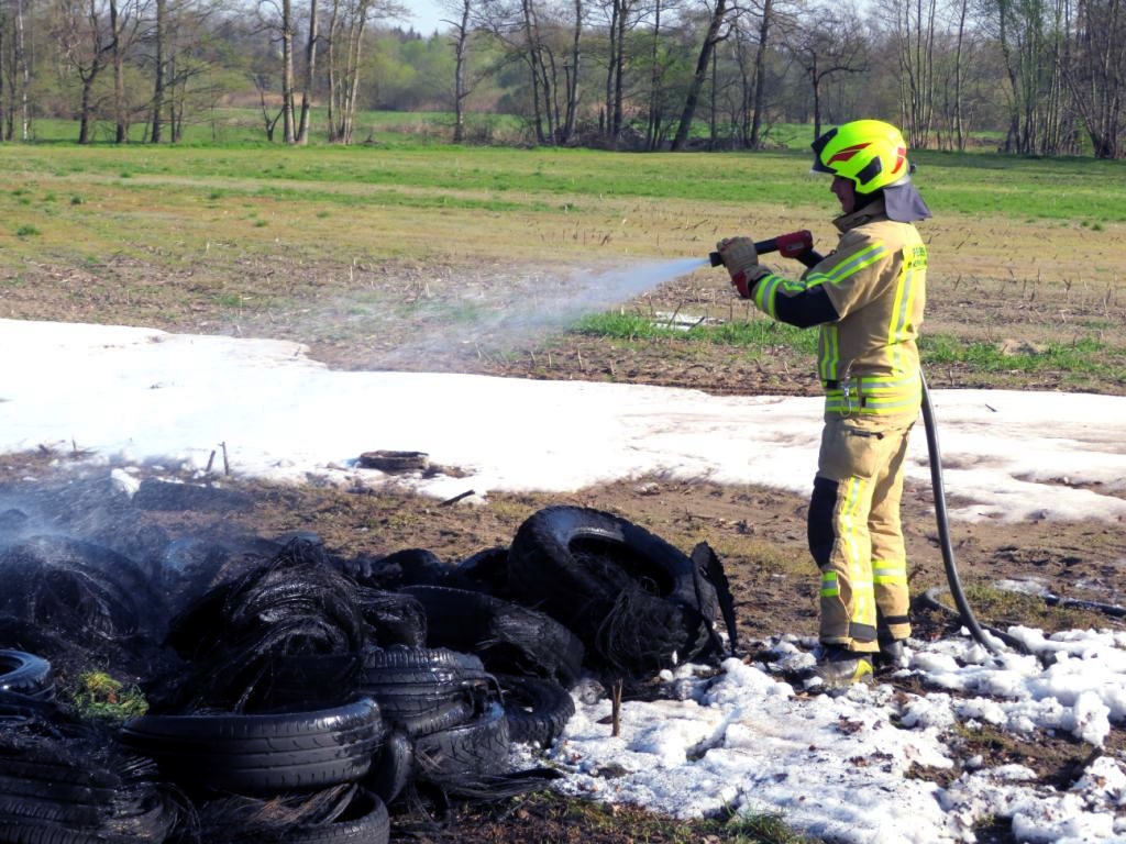 Dies führte offenbar nicht zum gewünschten Erfolg, denn um 8:53 Uhr am Karfreitag wurden die Bergener Kameradinnen und Kameraden erneut nach Jiggel alarmiert. Der betroffene Landwirt unterstützte die Feuerwehr mit seinem Trecker. Gemeinsam gelang es, die brennenden Autoreifen auseinander zu ziehen und die verbliebenen Brandstellen und Glutnester mir reichlich Wasser abzulöschen. Der Dank der Feuerwehren gilt besonders dem Landwirt, der uns schnell und unkompliziert mit seinem Trecker unterstützte.