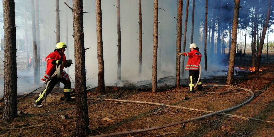 Am Samstag-Nachmittag gegen 17.30 Uhr lautete die Alarmierung „unklare Rauchentwicklung“, ein Einsatzgrund, der sich noch zweimal wiederholen sollte. Lediglich grob mit „Prezelle“ sowie „Im Forst“ mussten die beteiligten Wehren Gartow, Gorleben, Lanze, Lomitz und Prezelle sowie die Führungsstaffel aus Gartow den Brand erst einmal lokalisieren. Tatsächlich lag dieser dann tief in der Nemitzer Heide in recht unzugänglichem Gelände. Dort brannten bereits ca. 1.000 qm Kiefernwald und das Feuer drohte sich rasch auszubreiten. Die eingesetzten Wehren hatten die Lage aber schnell im Griff. Da der Waldbrand auf dem Gebiet der Samtgemeinde Lüchow lokalisiert worden war, wurden schließlich noch die Trebeler Wehr und der Lüchower Samtgemeinde-Brandmeister Torsten Breese nachalarmiert. Gegen Einsatzende addierten sich die eingesetzten Kräfte auf 119.