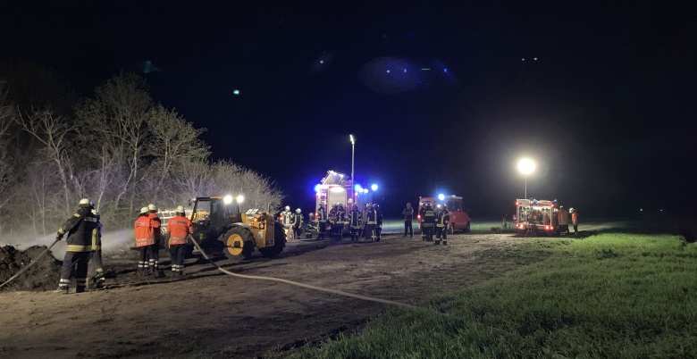 Scheinbar wurde der Resthaufen durch den böigen Wind entfacht, der die Böschung und den dahinter liegenden Wald gleich mit entzündete. Durch die Alarmierung eilten Einsatzkräfte der Feuerwehren Lüchow und Plate zum Ort des Geschehens. Die Lüchower Kameraden begannen sofort mit Hilfe eines TLF und HLF mit der Brandbekämpfung. Die Plater Kameraden legten eine etwa 300m lange Wasserversorgung vom Ortsrand und unterstützten beim Löschen. Währenddessen eilte ein Landwirt mit einem Teleskoplader zur Einsatzstelle, um den Haufen auseinander zu ziehen. Nach etwa einer Stunde war der Einsatz für die Lüchower Kameraden beendet. Das Einsatzende für die Plater Feuerwehr war um 23:30h.