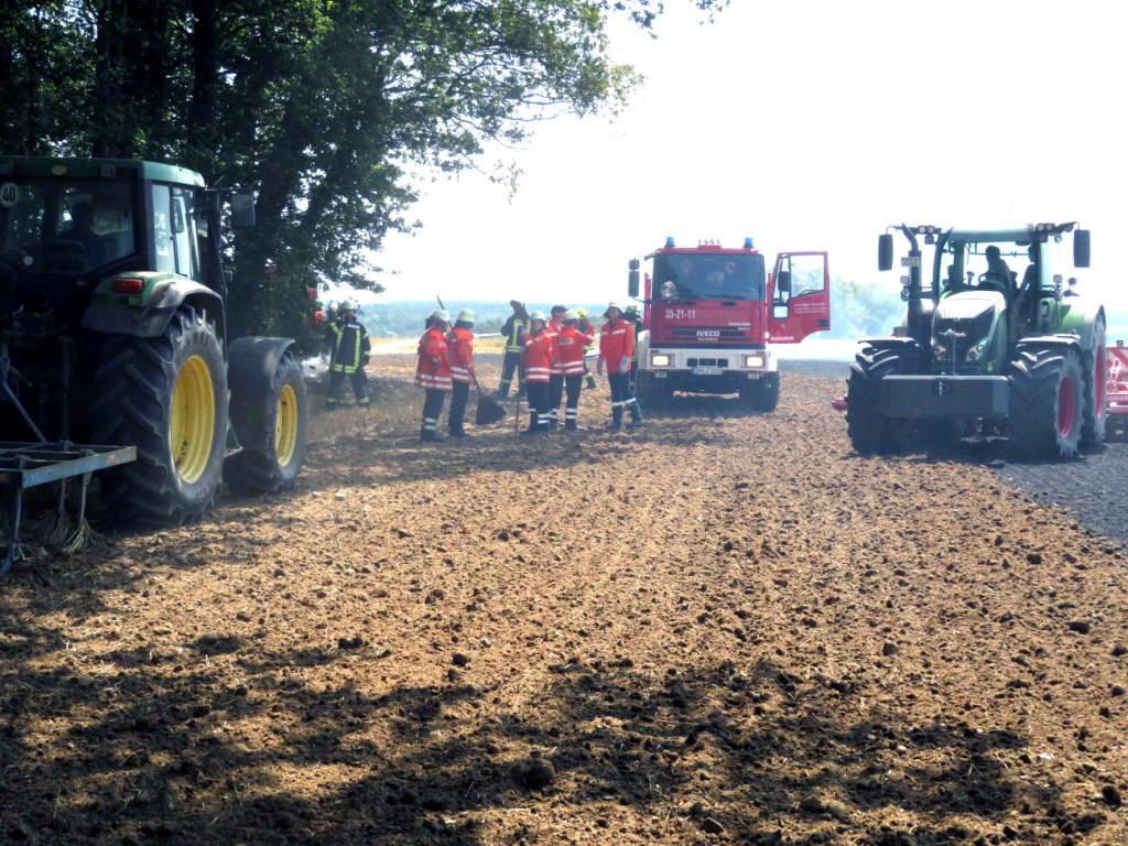 Gegen Ende des Einsatzes kam noch eine weitere Einsatzmeldung über Funk, dass bei Malsleben ein Mähdrescher brennt, hier konnte der Landwirt mit einem Feuerlöscher selber löschen.