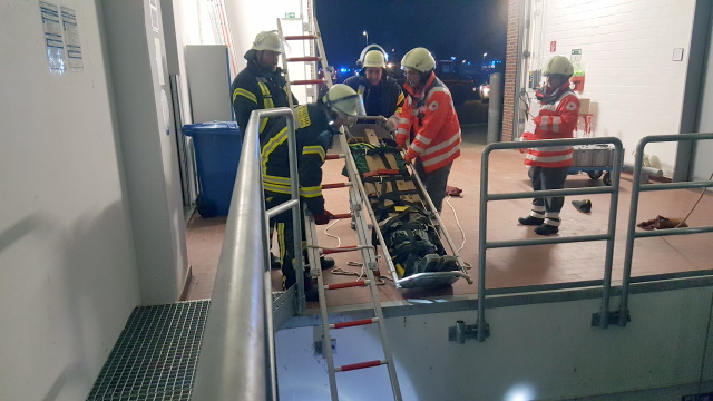 Hitzacker (al) Am 7. Oktober wurden um 18:55 Uhr die Feuerwehren aus Hitzacker, Harlingen und Metzingen zum Schöpfwerk des Niedersächsischen Landesbetriebes für Wasser-, Küsten- und Naturschutz (NLWKN) nach Hitzacker alarmiert mit der Meldung: „Rettung von 2 Personen aus einer Grube in der Pumpenhalle“.