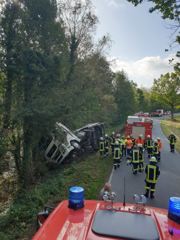Der Kraftfahrer des LKW konnte sich unbeschadet selbst aus dem Führerhaus retten und wurde vorsorglich vom Rettungsdienst in ein Krankenhaus gebracht. Seitens der Feuerwehr waren keine Arbeiten am Fahrzeug notwendig. Die Einsatzkräfte sicherten die Einsatzstelle und sperrten die K18 für die Dauer der Bergungsarbeiten gemeinsam mit der zuständigen Straßenmeisterei.