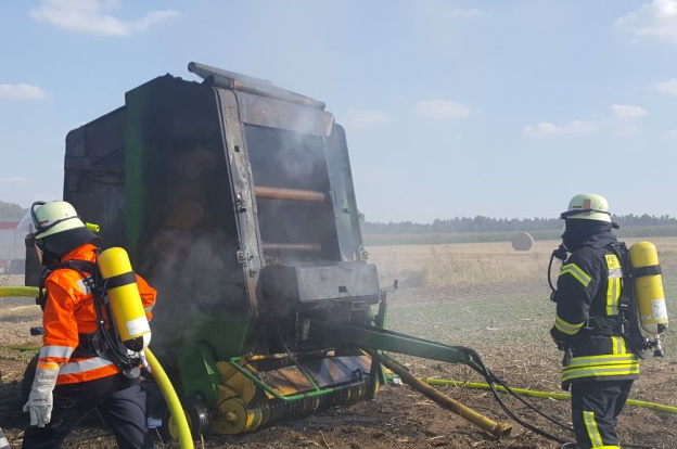 Hitzacker(al) Der Brand einer Strohballenpresse und infolge dessen ein Stoppelfeldbrand beschäftigte am Nachmittag des 07. August 2020 die Feuerwehren rund um Hitzacker.