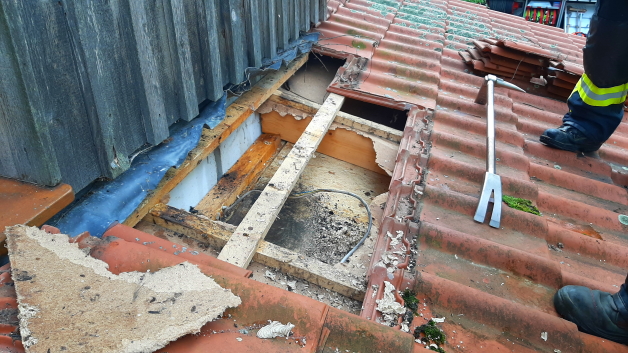 Eine parallele Erkundung mittels Wärmebildkamera vom Inneren des Gebäudes her, ergab dann schließlich auch eine endgültige Entwarnung, dass sich keine weiteren Glutnester noch irgendwo im Giebelbereich befinden könnten.