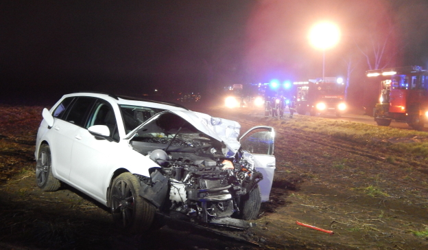 Der Fahrer vom PKW wurde durch den Rettungsdienst versorgt und mit einem Rettungswagen in ein Krankenhaus gebracht.Die Einsatzkräfte der Feuerwehr leuchteten die Einsatzstelle aus und nahmen auslaufende Betriebsstoffe auf.