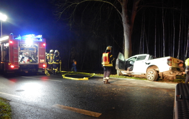 Ein PKW kam aus ungeklärten Gründen von der Straße ab und prallte frontal gegen einen Baum. Der Fahrer kam schwer verletzt in ein Krankenhaus.