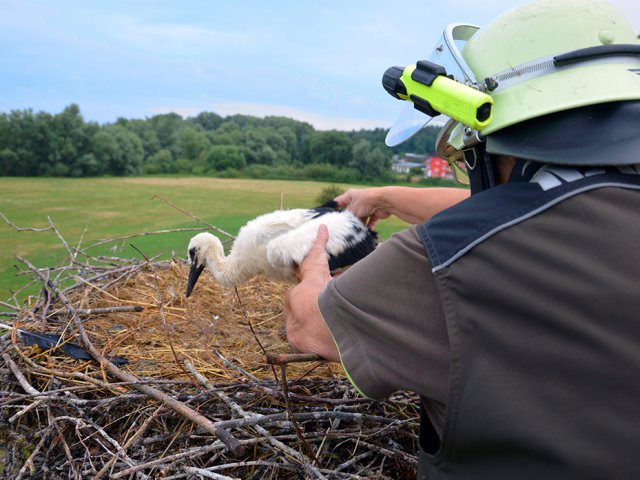 Hitzacker/Dannenberg (hbi) Dass unsere Einsätze ein glückliches Ende nehmen, ist ja leider selten, auch im Fall der Tierrettung am 29.6. sah es anfangs nicht nach einem guten Ende aus: ein leider verstorbenes Küken und ein unterernährter Baby Storch waren die Bilanz vom 29.6.