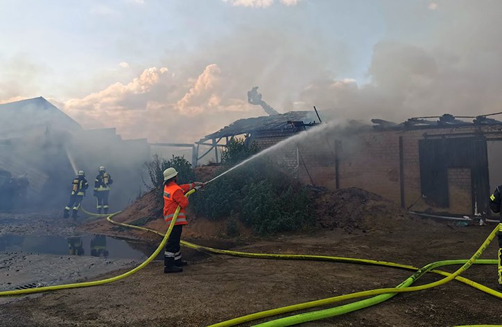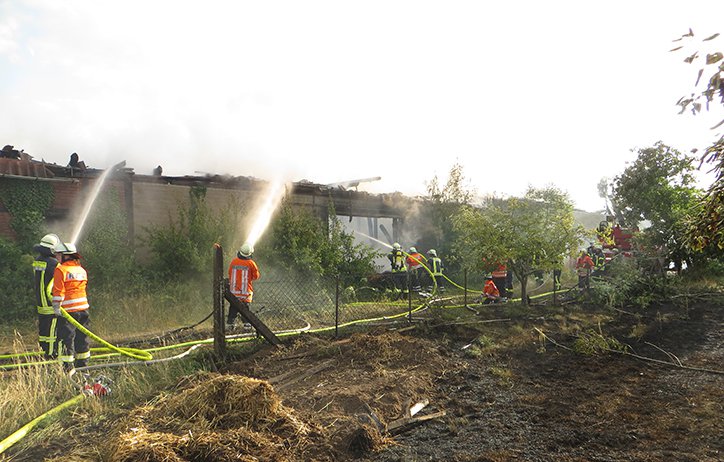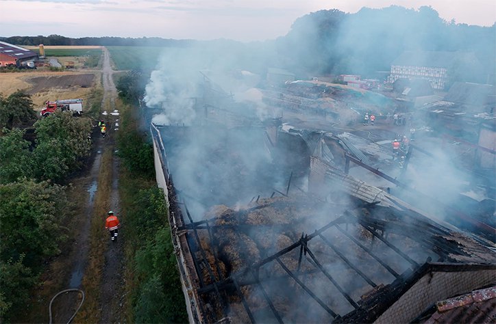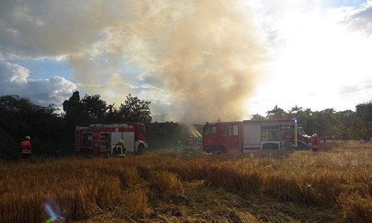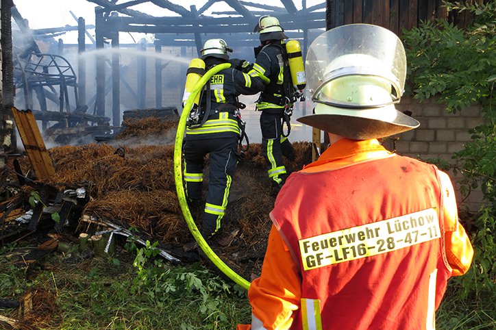 Kussebode (hbi) Zu einem Scheunenbrand wurde die Freiwillige Feuerwehr für Lüchow-Dannenberg am frühen Montagabend (04.07.2022) gegen 18:45 alarmiert. „Scheunenbrand, Wohnhaus in Gefahr“ lautete die Meldung. Beim Eintreffen der ersten Einsatzkräfte bestätigte sich die erste Meldung: eine Scheune, in der überwiegend trockenes Stroh aus dem Vorjahr gelagert war, stand bereits im Vollbrand. Das Wohngebäude auf dem Nachbargrundstück war entgegen erster Meldungen aber nicht gefährdet.