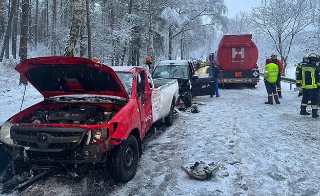 Die Feuerwehr rückte zu zwei Verkehrsunfällen aus. In den frühen Morgenstunden kollidierte ein PickUp auf der B216 zwischen Metzingen und Göhrde mit einem Tanklastzug. Der Pickup war auf schneebedeckter Fahrbahn gegen 06:30 Uhr ins Schleudern gekommen mit dem entgegenkommenden Sattelschlepper kollidiert. Der 61 Jahre alte Fahrer eines folgenden Pkw VW konnte nicht mehr rechtzeitig bremsen und fuhr auf den Toyota auf. Der 55-Jährige sowie der 61-Jährige erlitten leichte Verletzungen und wurden vor Ort vom Rettungsdienst versorgt. Da der Tanklastzug Benzin geladen hatte, wurde vorsorglich die Kreisfeuerwehrbereitschaft 2 - Umwelt alarmiert. Glücklicherweise trat aber kein Gefahrgut aus.