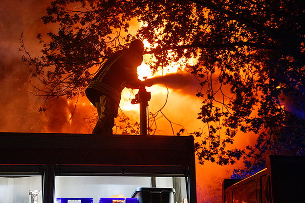 Trotz eines massiven Löscheinsatzes gelang es den über 160 ehrenamtlichen Einstzkräften nicht, ein Übergreifen der Flammen auf das angrenzende Wohnhaus zu verhindern. Der Stall sowie das Wohnhaus wurden komplett zerstört. Das Feuer breitete sich rasend schnell aus.