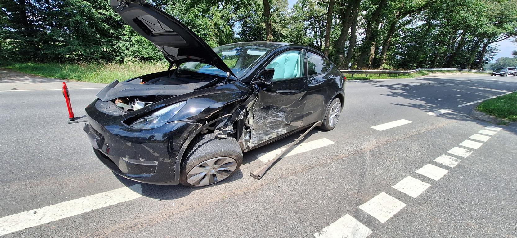 Ein Tesla wollte an der Abfahrt Glieneitz nach links abbiegen, als der Fahrer eines Ford versuchte, das Elektrofahrzeug zu überholen. Der Ford-Fahrer übersah den Abbiegevorgang und rammte den Tesla seitlich. Durch die Wucht des Aufpralls wurden beide Fahrzeuge stark beschädigt.