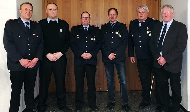 André und Timo Pfand wurden für 25 Jahre aktiven Dienst in der Feuerwehr ausgezeichnet. Bernd Schröter und Jürgen Schulz nahmen die Ehrung für 40 Jahre Mitgliedschaft entgegen, Hartmut Schulze für 50 Jahre. Hans Licht wurde für 60 Jahre Mitgliedschaft in der Freiwilligen Feuerwehr ausgezeichnet.
