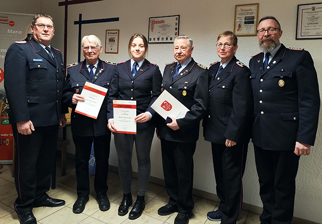 Axel Steinbiß hatte dann auch einige Ehrungen dabei. Die „Bandschnalle in Altgold“ für 10 Jahre aktive Tätigkeit verlieh die Bundesvereinigung Deutscher Musikverbände an Antonia Noak. Ralph Hoppe wurde mit der „Bandschnalle in Silber“ für 20 Jahre geehrt.