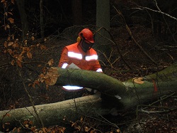 - Schnittübungen am liegenden Holz, Beurteilung von Holz in Spannung